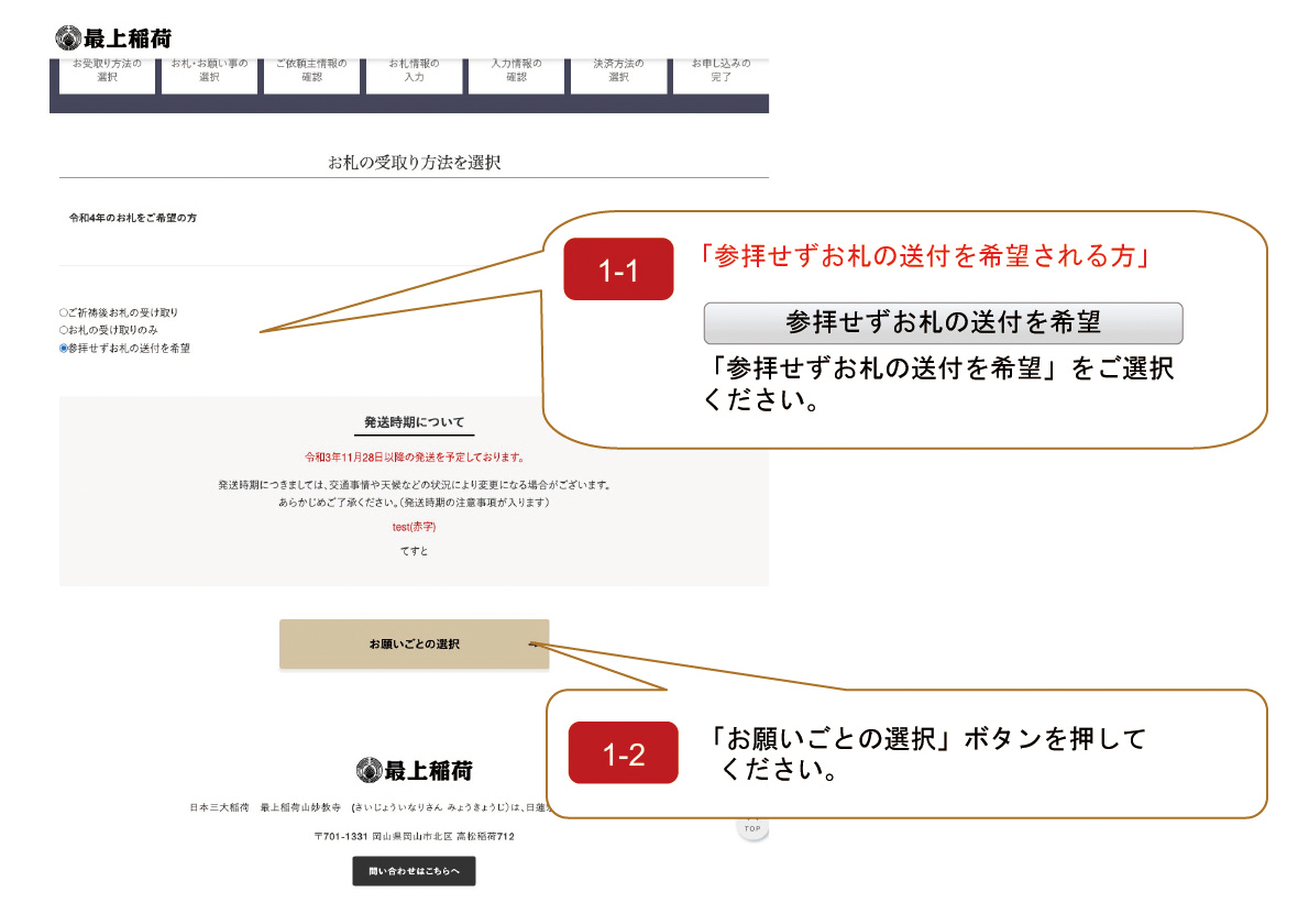 1. お札の受取り方法を選択・お札の受取り日の選択